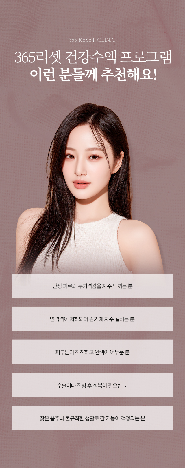 365리셋의원 건강수액 프로그램은 피로 회복부터 면역력 증진까지